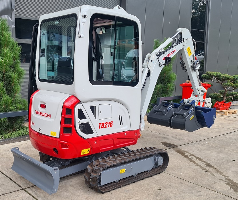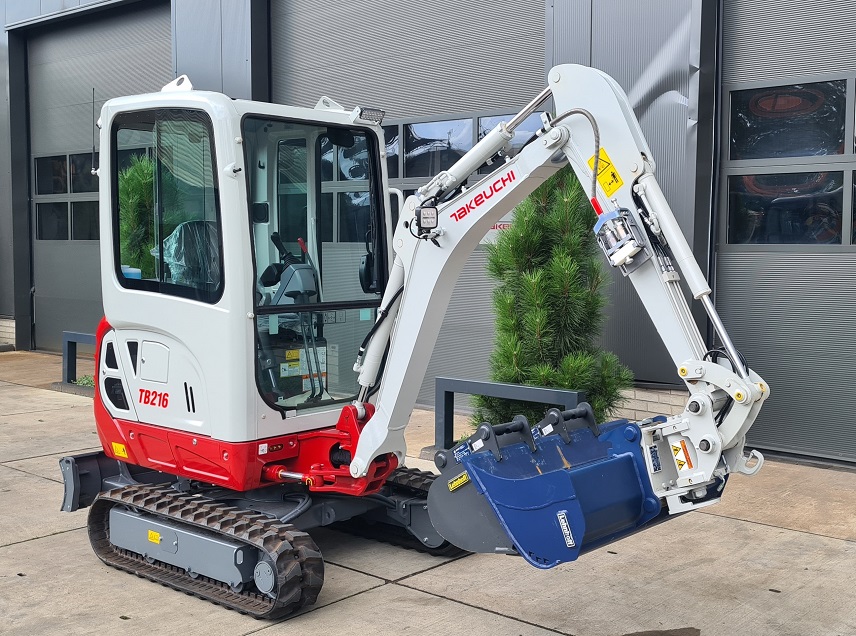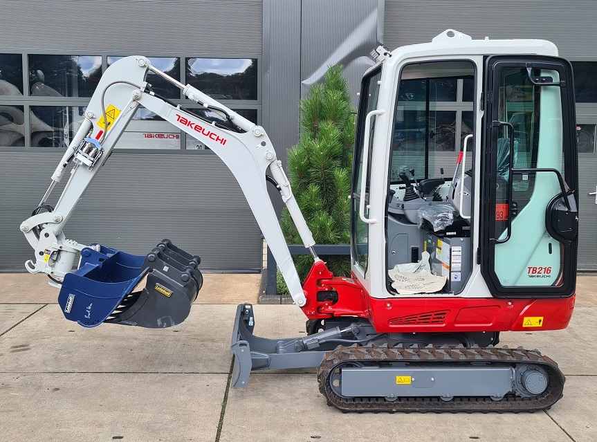 2023 Takeuchi TB216 excavator – 1.9 ton 3 hours Operating weight 1.865 kg Power 15 hp Air conditioning Taklock system