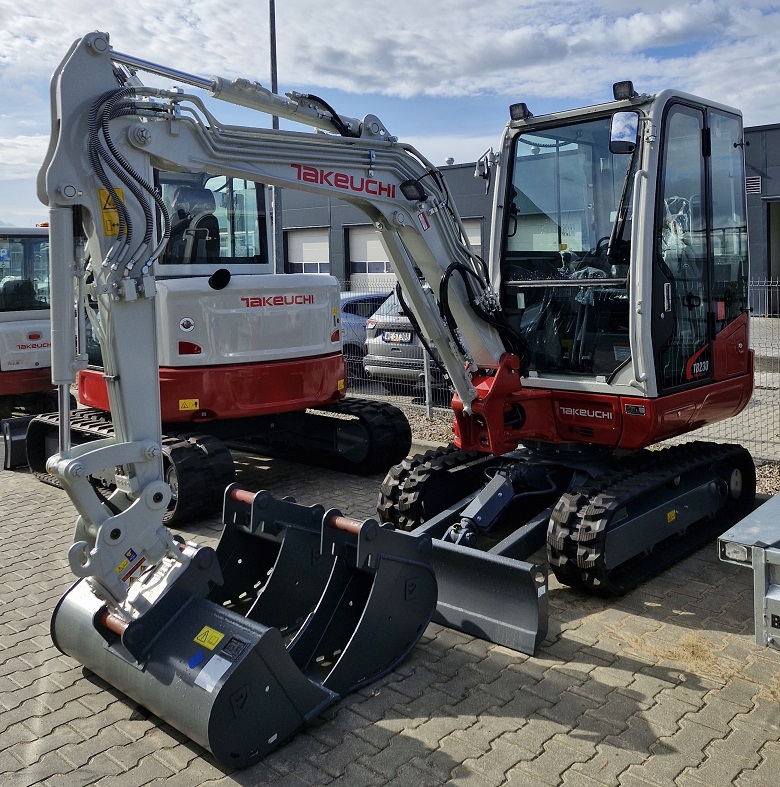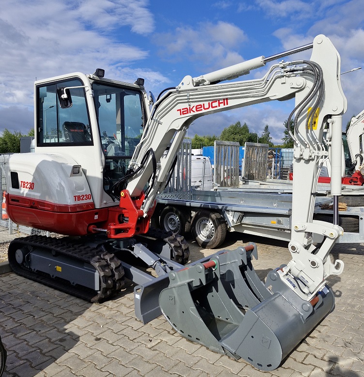 2023 Takeuchi TB230 excavator – 2.9 ton 2 hours Operating weight 2.875 kg Power 25 hp Air conditioning